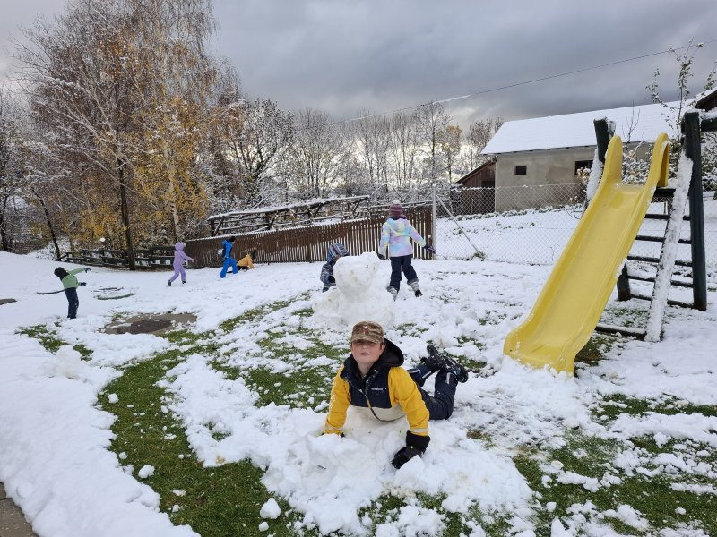 ZIMA, ZIMA BELA, VRH TINJA SEDELA … Danes, 18. 11. 2025, smo na Tinju dočakali prvi sneg v tem šolskem letu. diaprojekcija